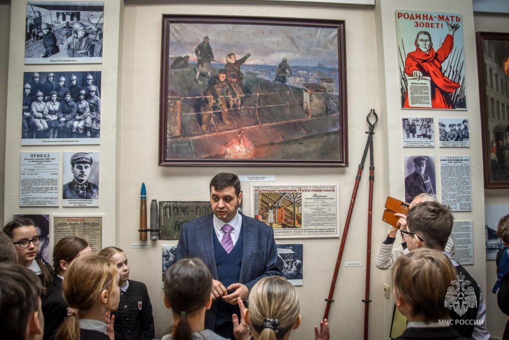 В день полного освобождения Ленинграда от фашистской блокады, особой темой экскурсии была экспозиция, посвящённая Великой Отечественной войне 1941г.-1945г. Школьники узнали о героической работе огнеборцев в осаждённом городе, смогли познакомиться с историей мужества и самоотверженности, проявленными жителями блокадного Ленинграда, его защитниками, а также ленинградскими пожарными и бойцами МПВО в дни вражеской осады города. Они узнали о повседневной работе сотрудников пожарной охраны и членов местной противовоздушной обороны.