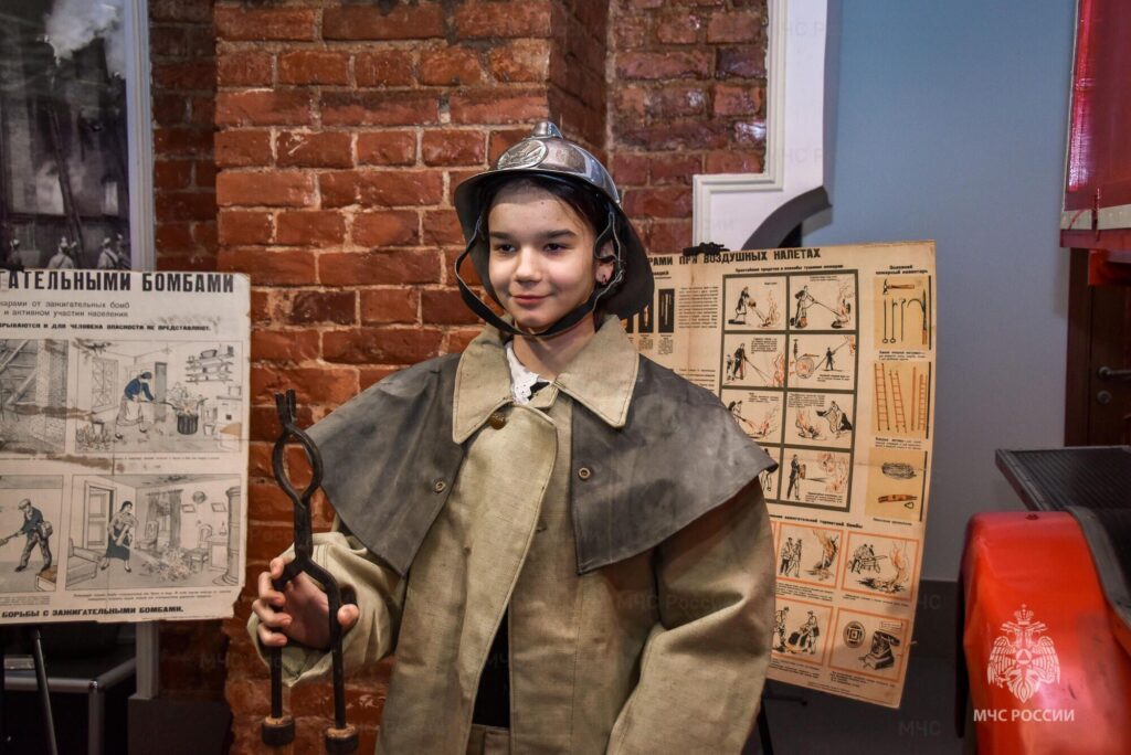 Особое впечатление произвела возможность примерить на себя настоящую боевую одежду тех времен и поучаствовать в увлекательной реконструкции тушения условной зажигательной бомбы.