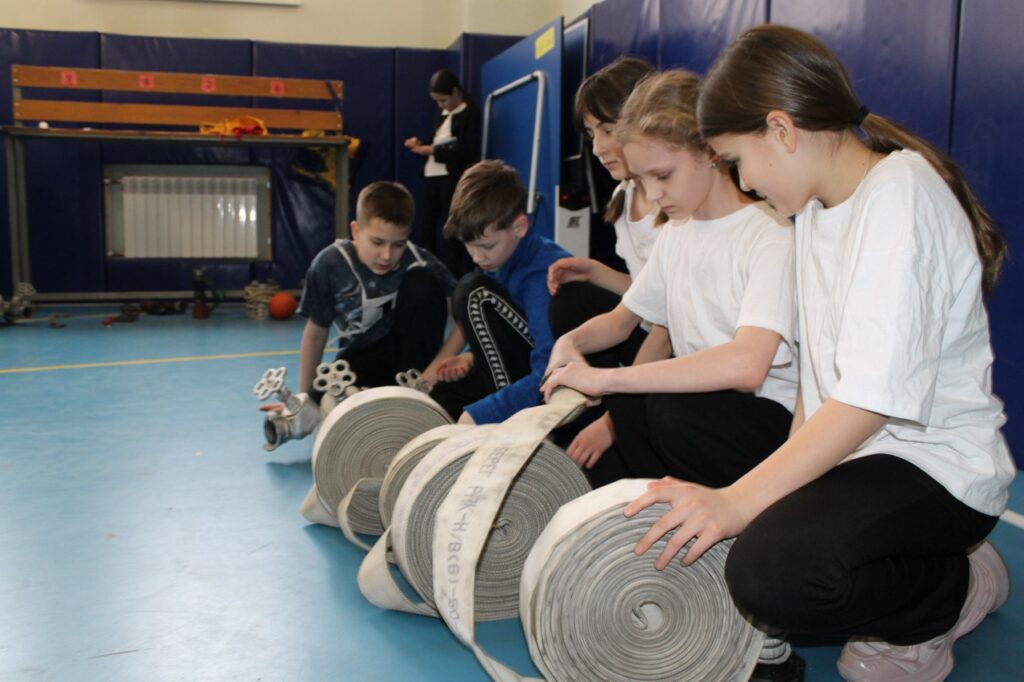 Ребята освоили такие элементы как прокладка рукавной линии, преодоление препятствий в виде условной 150-сантиметровой ямы с водой, барьера, тоннеля и гимнастической скамьи, а также силовые физические упражнения (пресс, отжимания от пола), вязание пожарного узла и выкладку пожарно-технического вооружения и снаряжения.