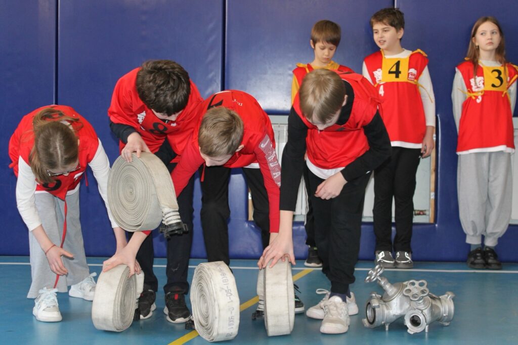 В феврале и в марте текущего года, работники СПб ГКУ «ПСО Петроградского района» в спортивном зале пожарной части № 10 Петроградского района проводили тренировки с детьми 45 классов, подготавливая их к районным соревнований среди юных пожарных общеобразовательных учреждений Петроградского района Санкт-Петербурга до 13 лет. Ребята освоили такие элементы как прокладка рукавной линии, преодоление препятствий в виде условной 150-сантиметровой ямы с водой, барьера, тоннеля и гимнастической скамьи, а также силовые физические упражнения (пресс, отжимания от пола), вязание пожарного узла и выкладку пожарно-технического вооружения и снаряжения.